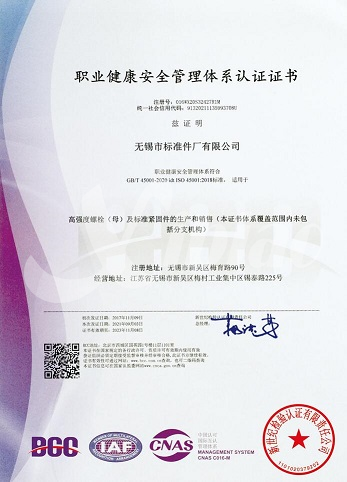 “ISO45001:管理体系认证”证书